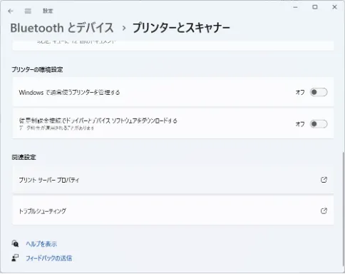 4. 「プリンターとスキャナー」に戻り,「関連設定」内の「プリントサーバープロパティ」を押してください.