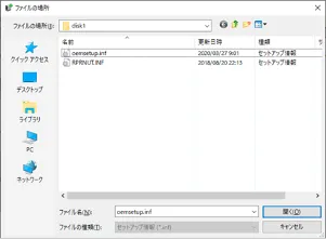 7. 「フロッピー ディスクからインストール」画面が開いたら「参照(B)…」を押し,「手順1:プリンタドライバのダウンロード」で解凍した,プリンタドライバのフォルダの中にあるフォルダ「disk1」を選択してください.当該フォルダ内のoemsetup.infが自動的に選択された状態になります.