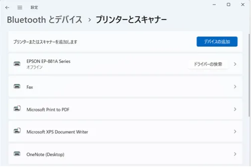 1. スタートメニュー等から「設定」を開き,「Bluetoothとデバイス > プリンターとスキャナー」を開いてください.