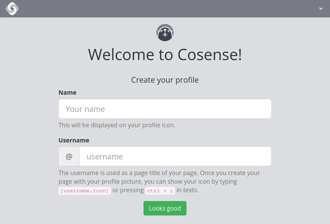 Once your Google account is connected, you will be taken to the Cosense account setting page. Please enter “Name” and “Username” respectively.