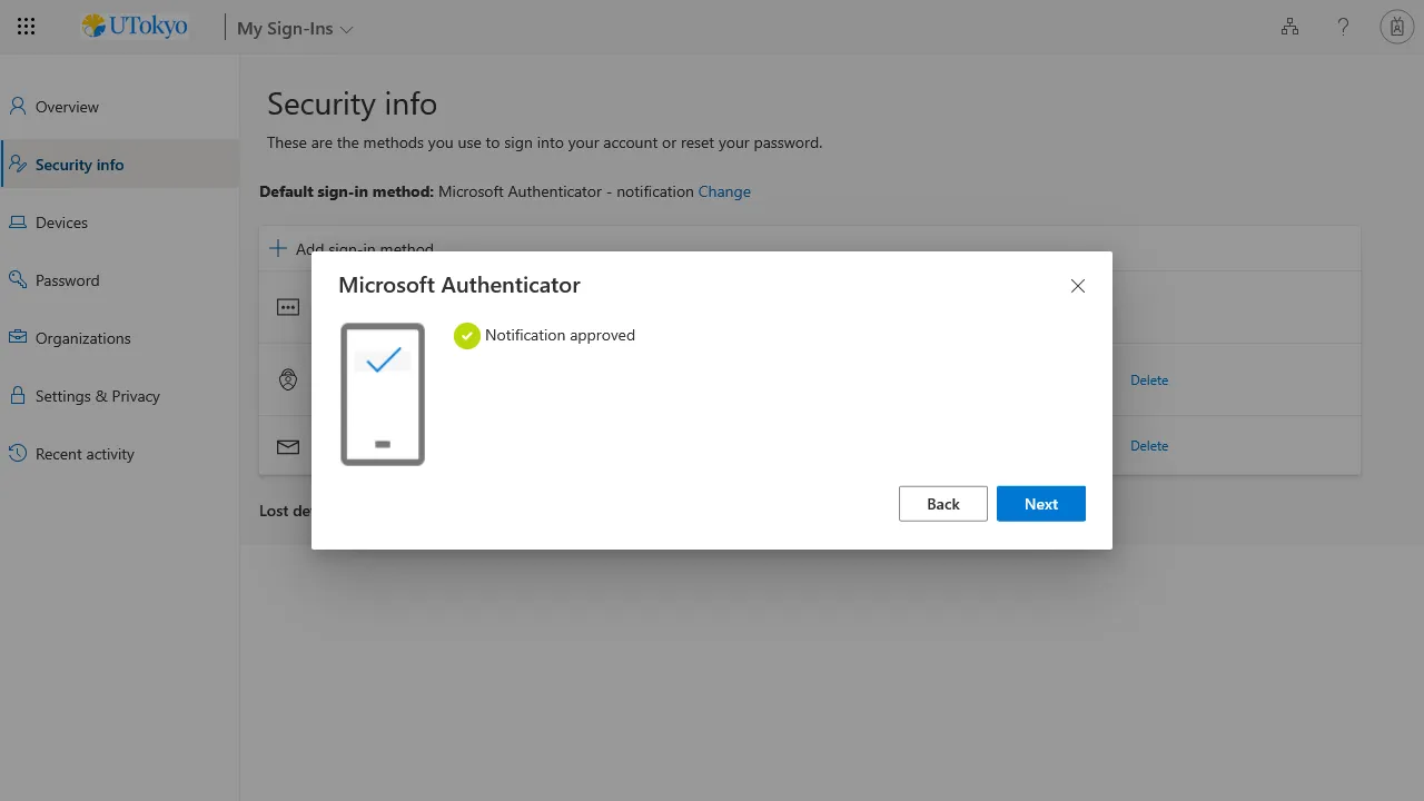 The next step is to check that you can sign in to your UTokyo Account using MFA.