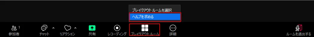 ブレイクアウトルームで何らかの問題が生じた場合,ブレイクアウトルームの参加者はホストに対してルームに参加するようにヘルプを求めることができます.ホストはそのリクエストに応答して,そのブレイクアウトルームに参加することができます.