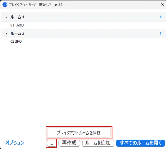 2. 表示されるウィンドウ下部の「…」から「ブレイクアウトルームを保存」を押してください.